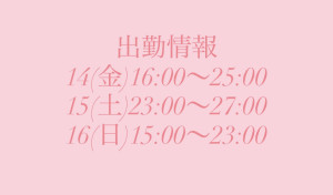 明日は14(金)16:00〜25:00で出勤しています!